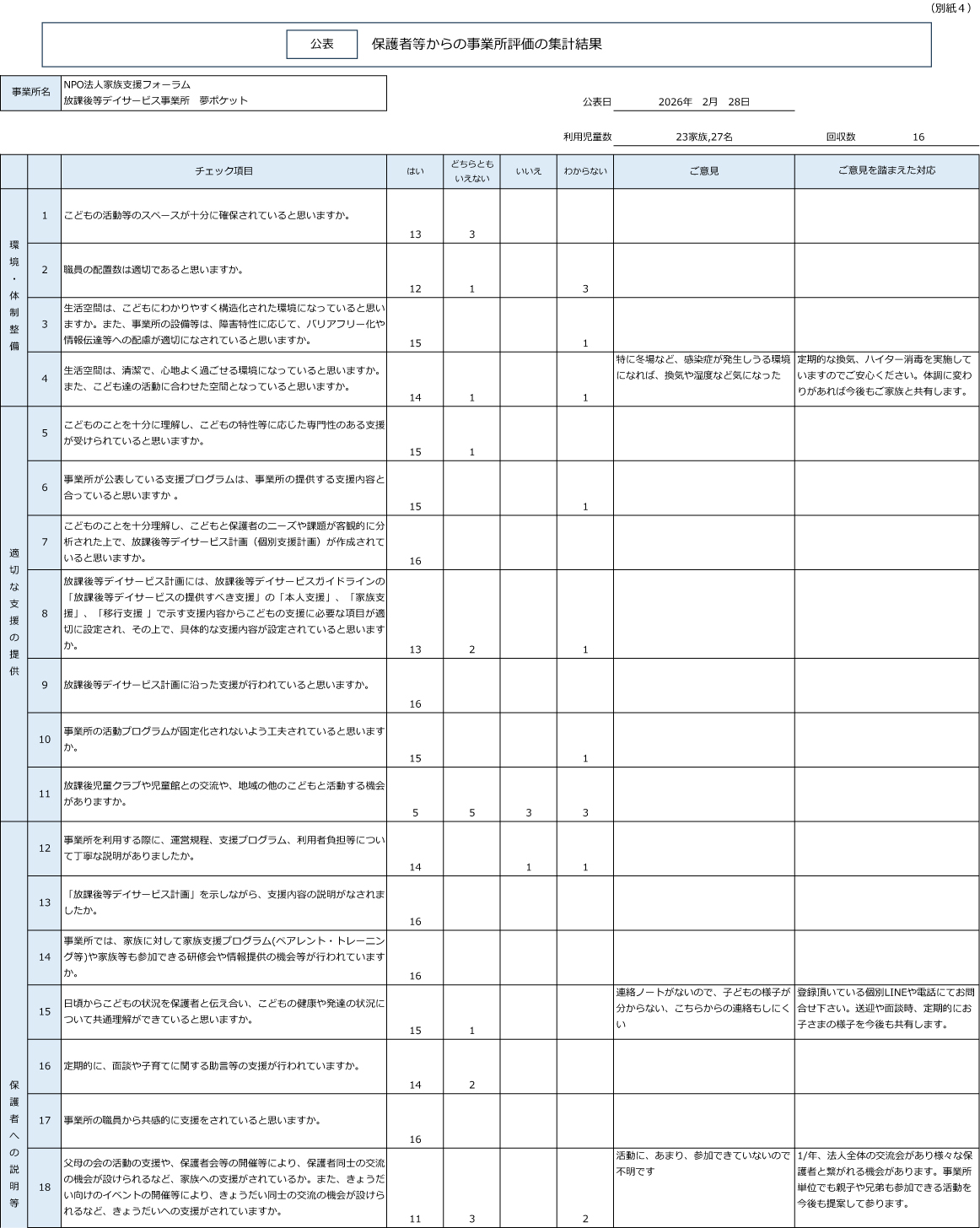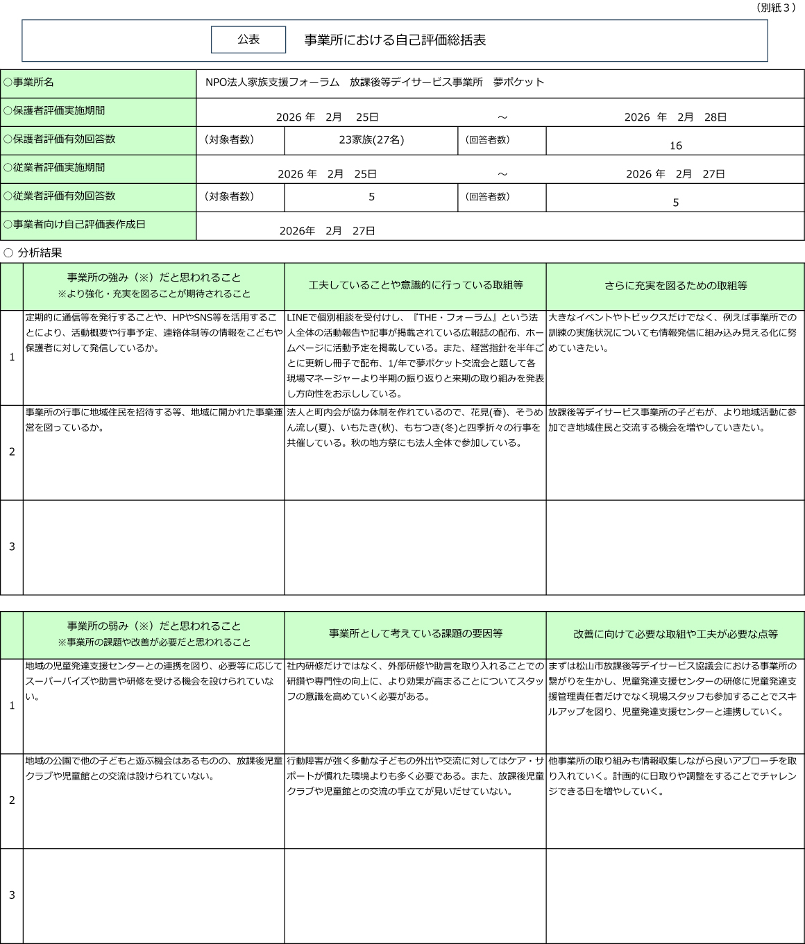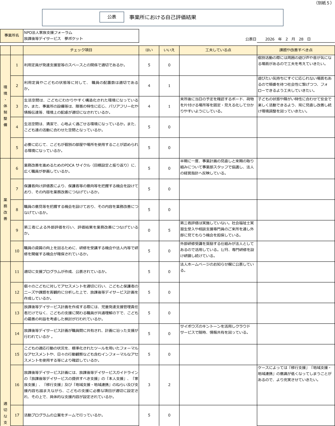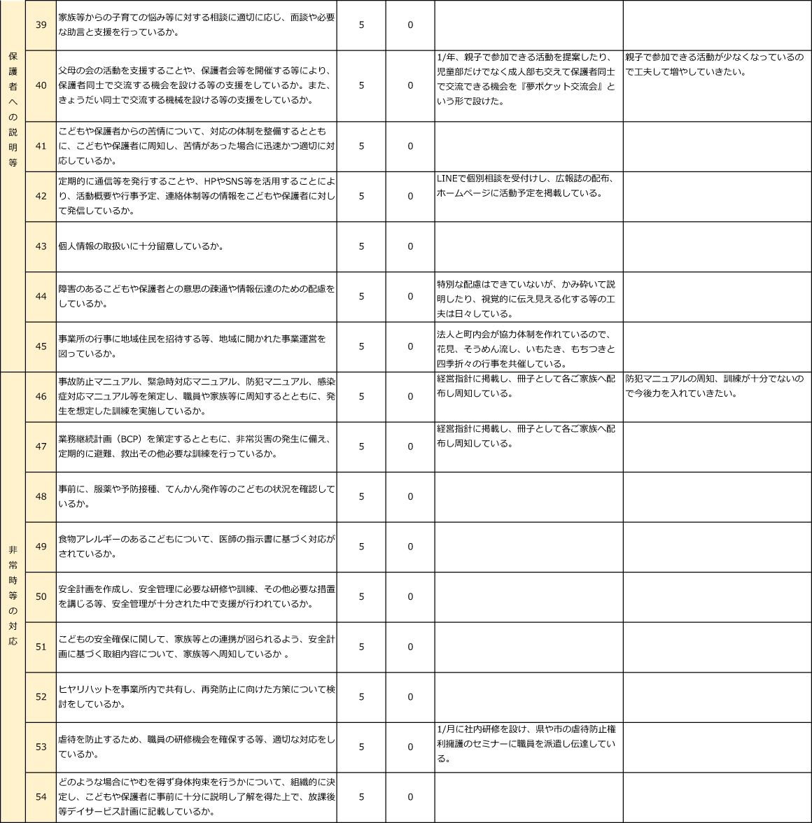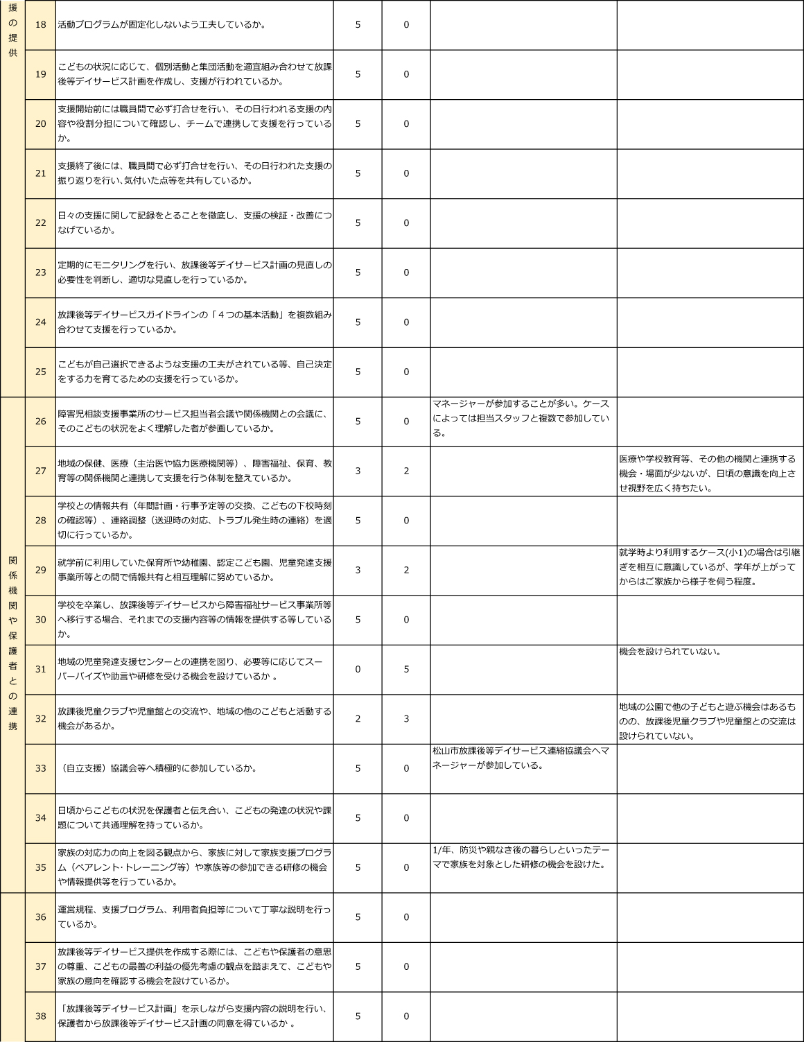 放デイ事業に係る自己評価結果