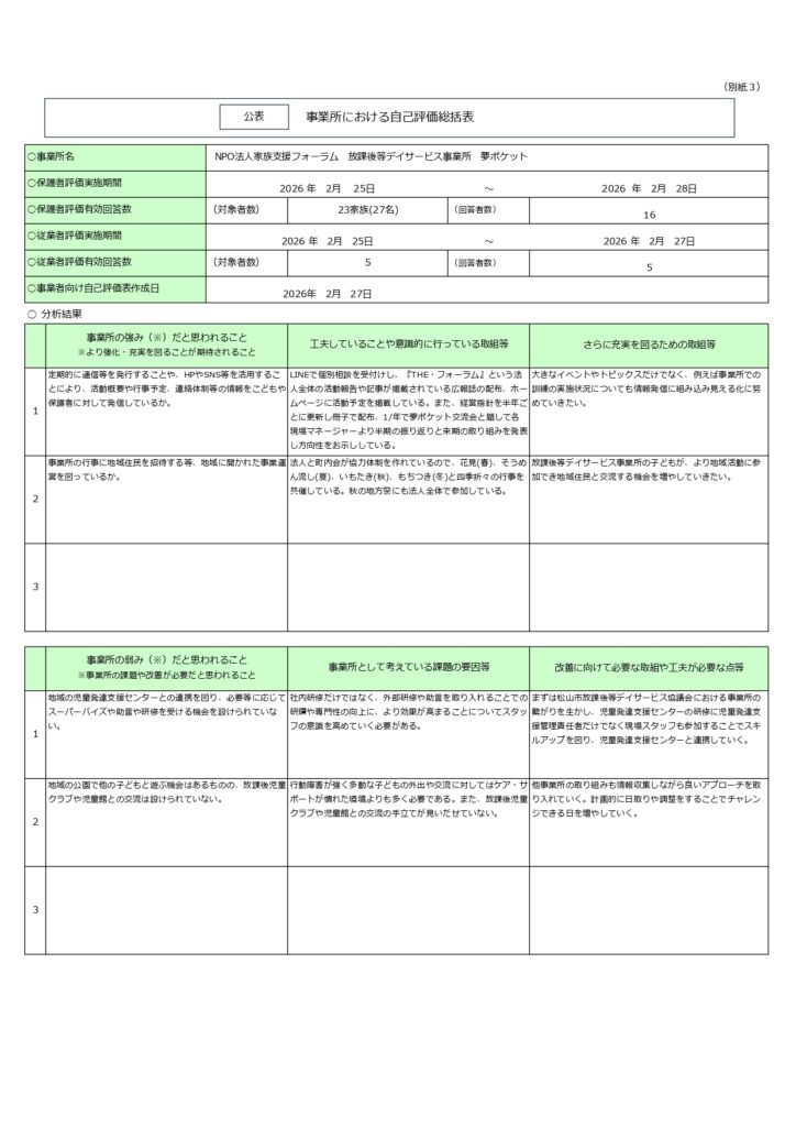 【児童】令和7年度 放デイ事業に係る自己評価結果