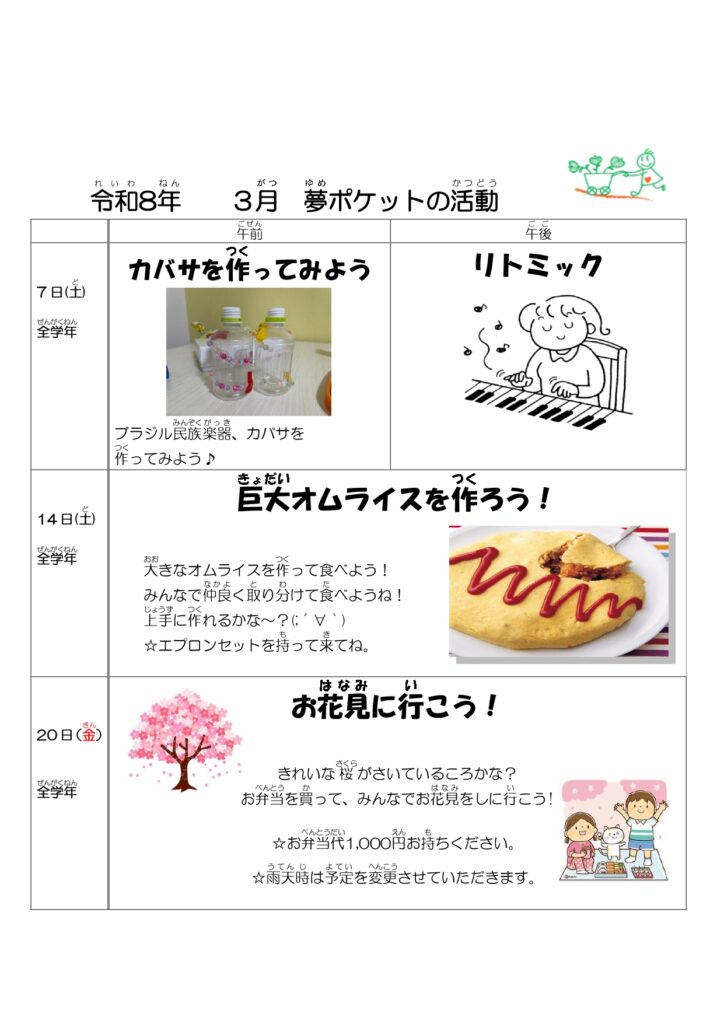 12月15日(月)までに、児童事業部LINEにてお申込みください。